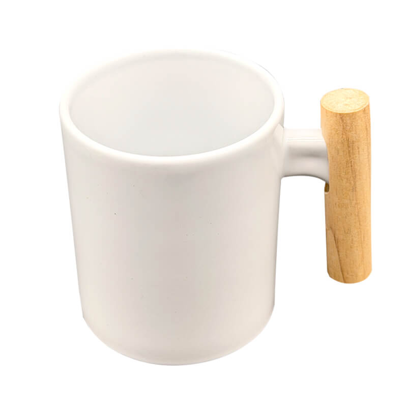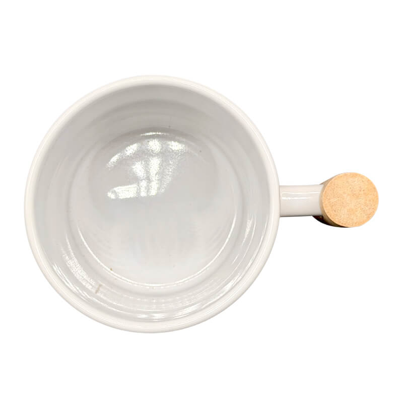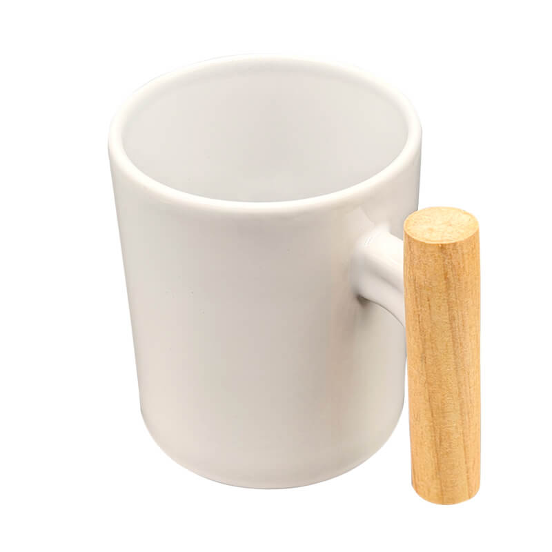 11oz white ceramic bamboo handle mug