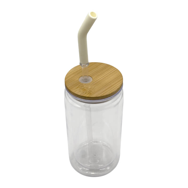 16oz Clear Double Wall Glass Mug With Bamboo Lid