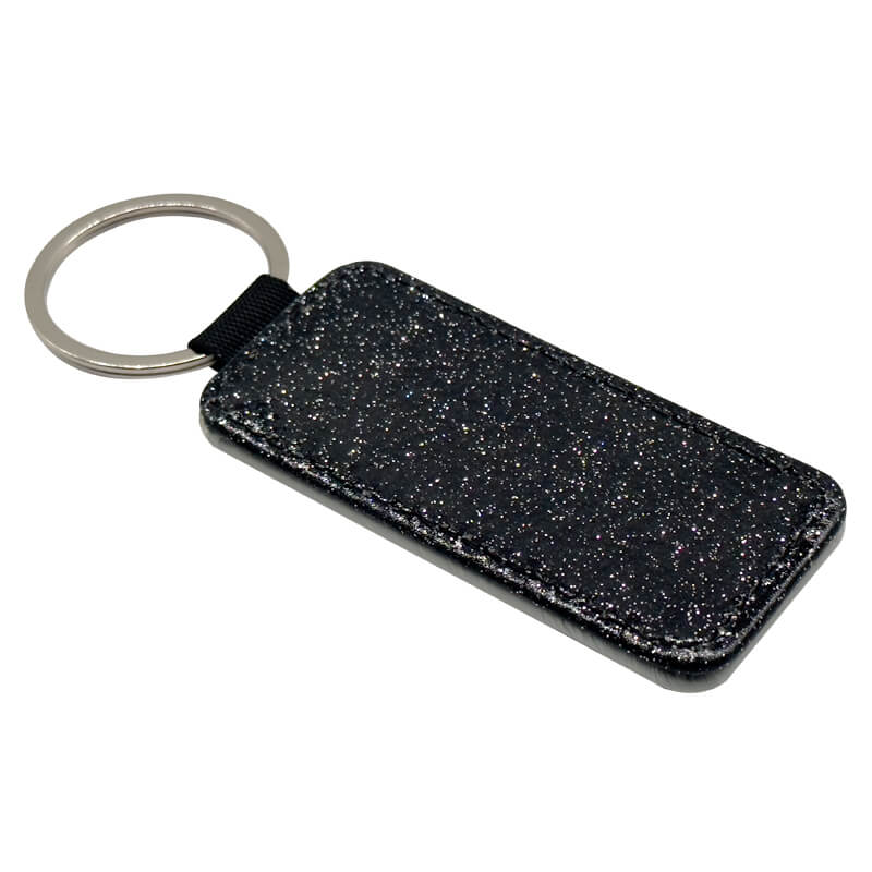 PU Keyring Rectangle Black Glitter quantity
