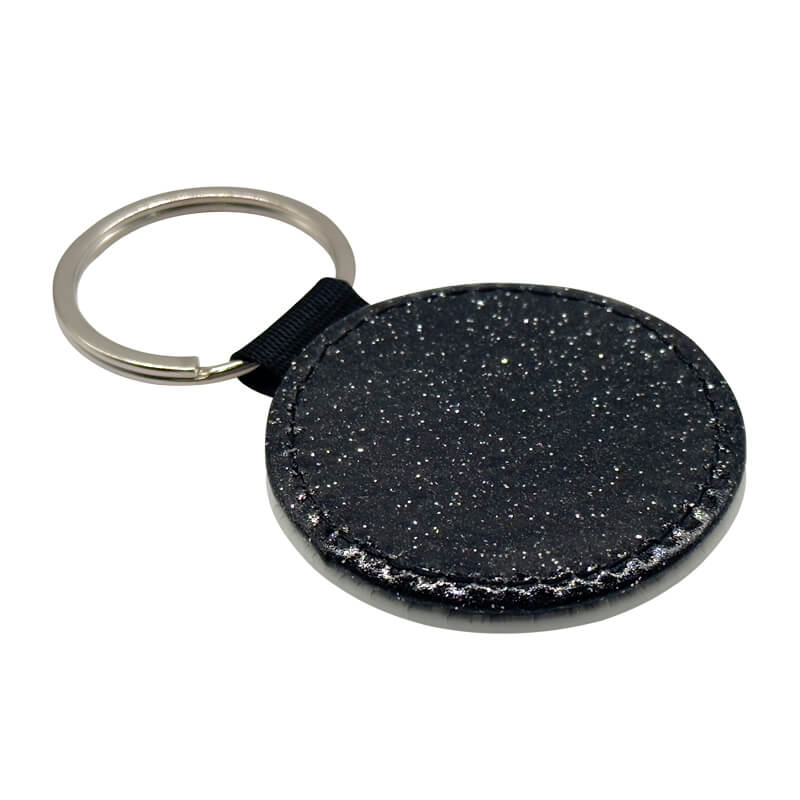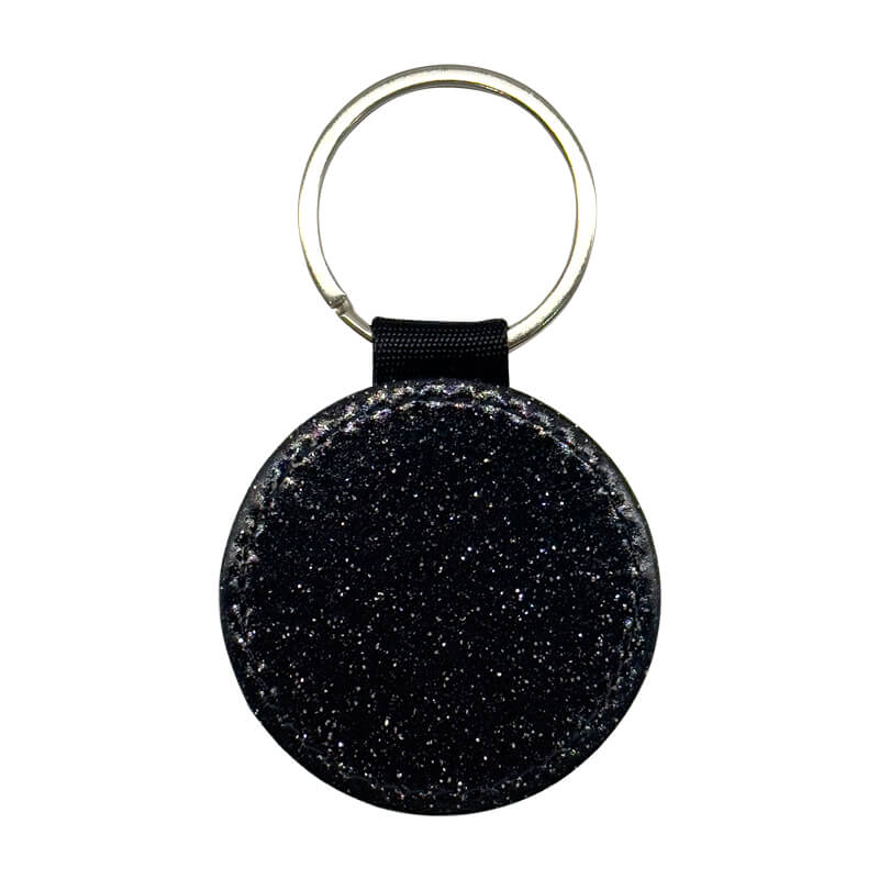 PU Keyring Round Black Glitter