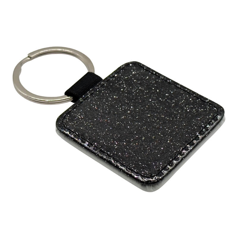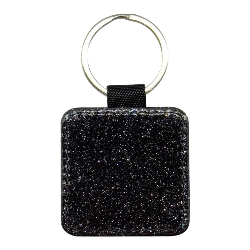 PU Keyring Square Black Glitter
